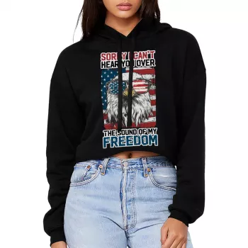 Can’t Hear You Over The Sound Of My Freedom Women’s Cropped Hoodie – American Flag Hooded Sweatshirt – Cool Eagle Super Crop Top Hoodies
