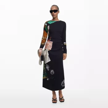 Desigual Black Printed Long Sleeve Dress – Women’s Viscose Elegance